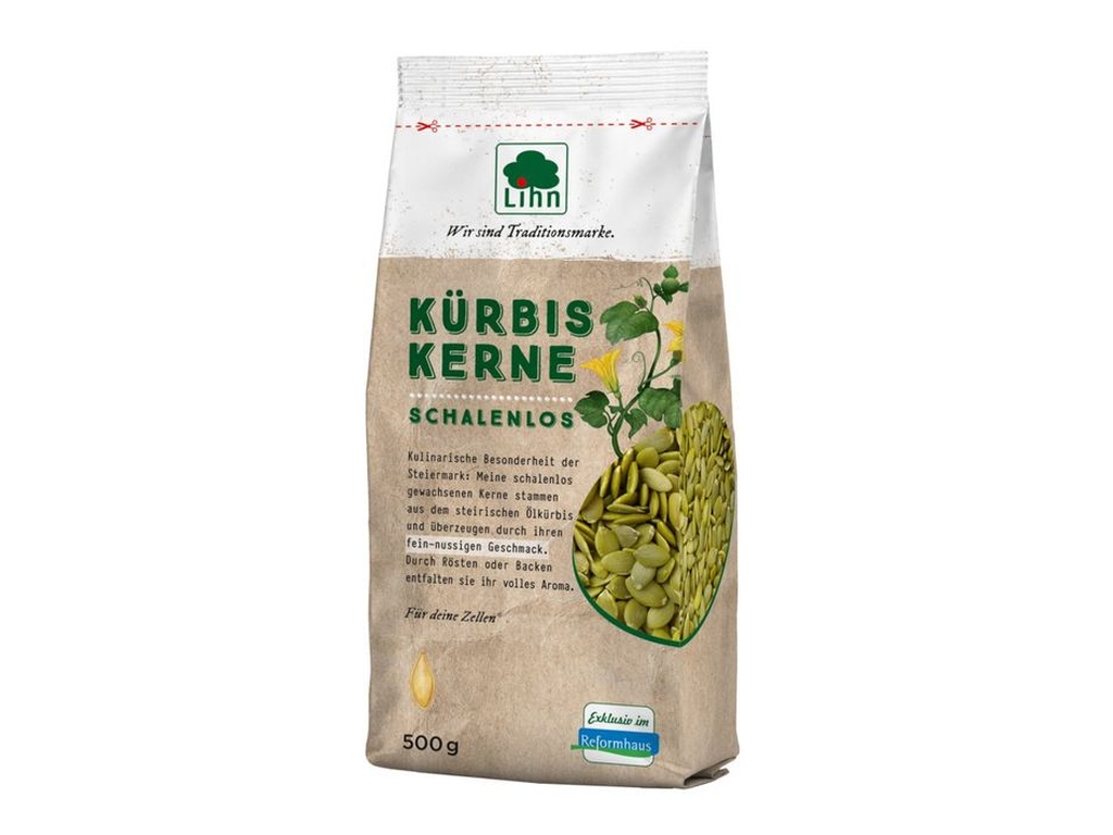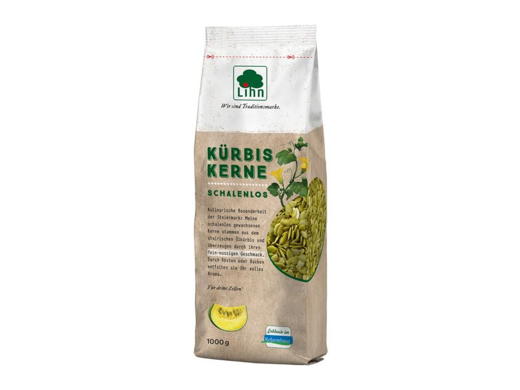 Lihn Kürbiskerne stammen aus einer steirischen Sonderzucht. Sie wachsen, anders als herkömmliche Kürbissamen, schalenlos im Kürbis heran und zeichnen sich durch ihre gleichmäßig tiefdunkelgrüne Farbe aus. In diesen Kernen hat die Natur gesunde Inhaltsstoffe in hochkonzentrierter Form gespeichert. Jeder einzelne enthält die Kraft und die Baustoffe, um mit Hilfe der Erde, des Wassers und der Sonne zu einer mächtigen Kürbispflanze heranzuwachsen.