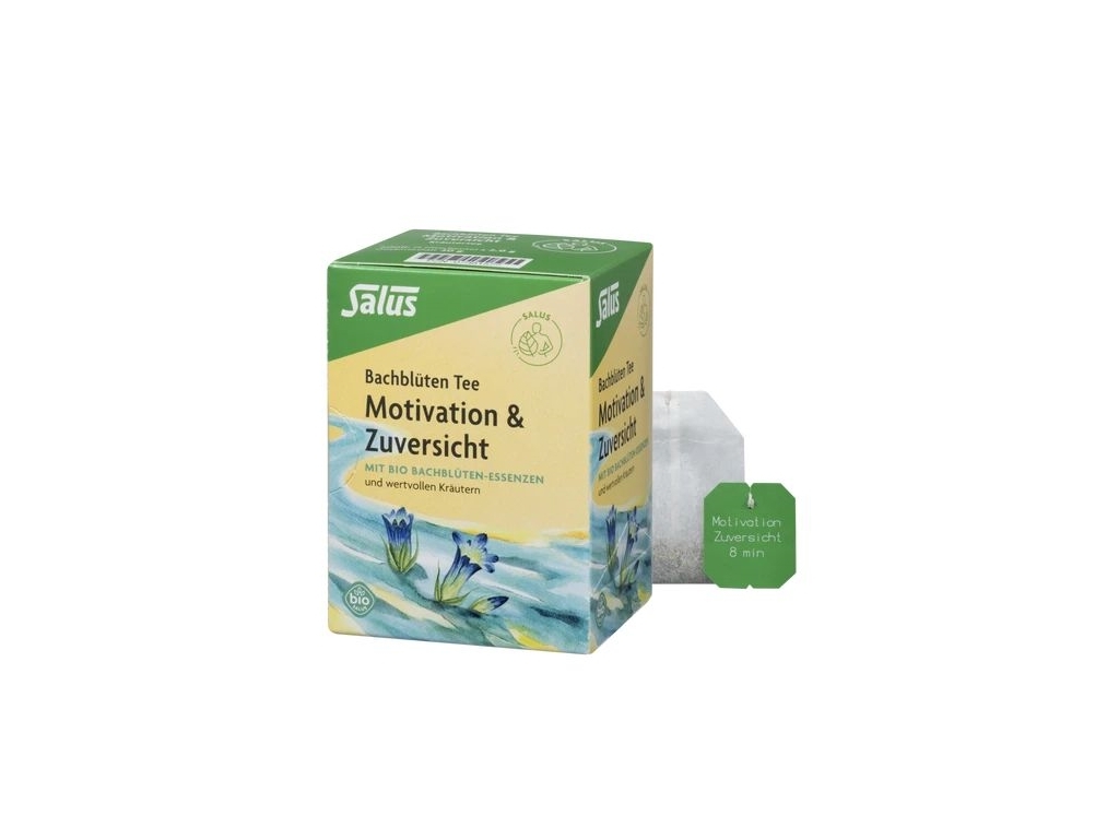 Salus Bachblüten Tee Motivation & Zuversicht ist eine Kombination aus sorgsam ausgesuchten Kräutern und den Bio Bachblüten-Essenzen Gentian, Hornbeam, Oak, Scleranthus und Sweet Chestnut.